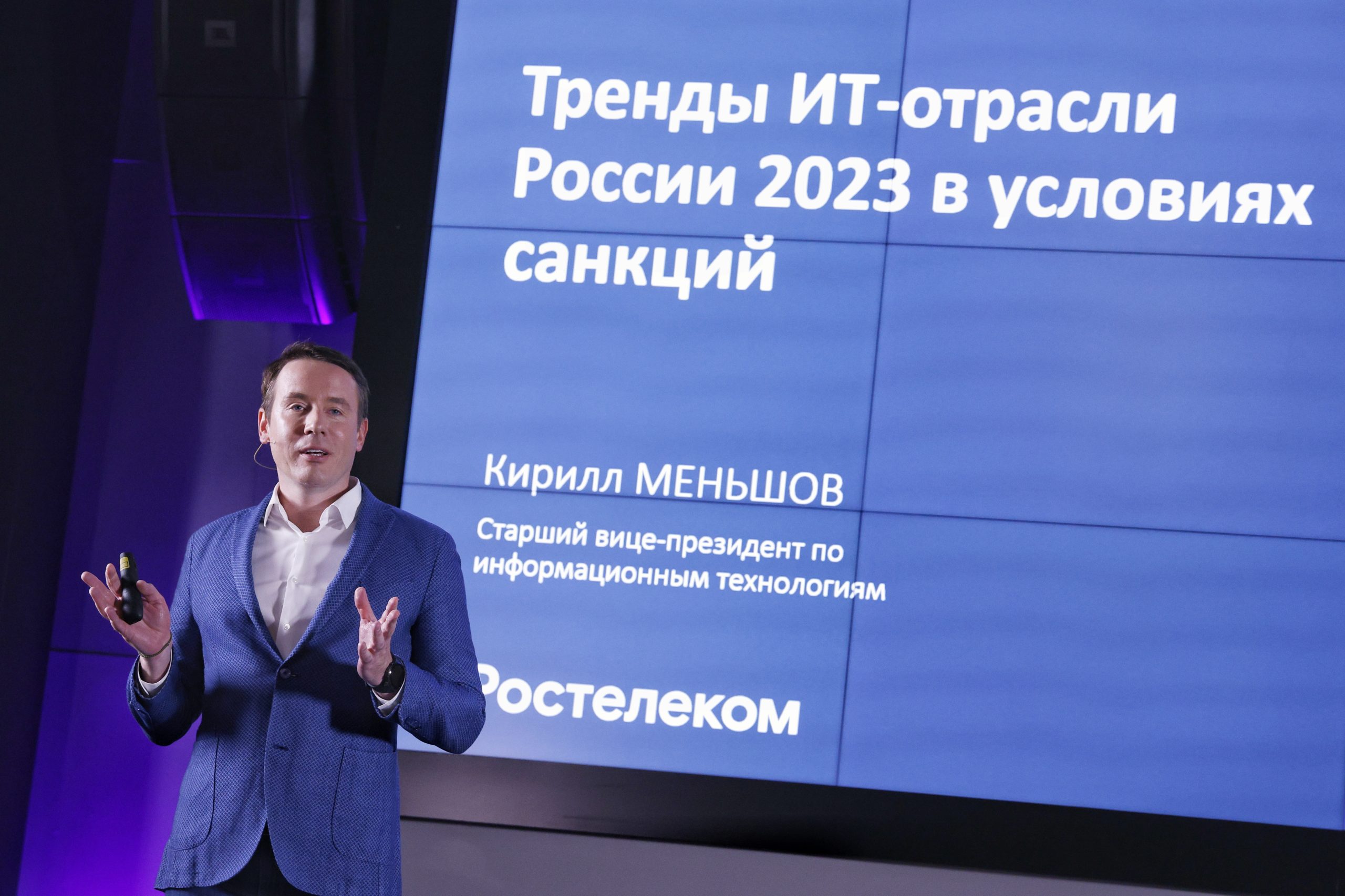 24 января в Москве прошла, уже ставшая традиционной, ежегодная закрытая встреча журналистов с топ-менеджерами компании «Ростелеком». В этом году о «Трендах ИТ-отрасли России 2023 в условиях санкций» рассказал старший вице-президент по информационным технологиям «Ростелекома» Кирилл Меньшов. Модератором на встрече был шеф-редактор и телеведущий «РБК ТВ» Кирилл Токарев.
