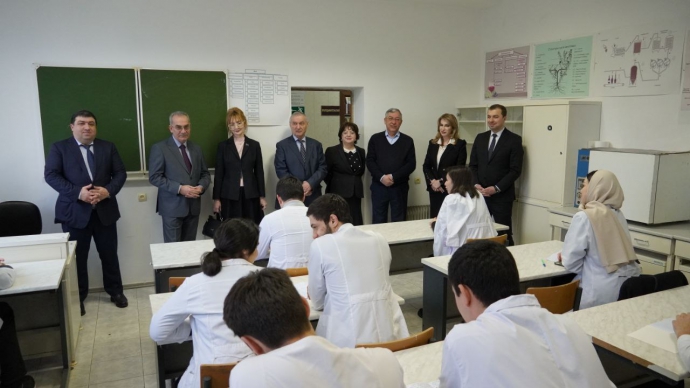 Заместитель Председателя Правительства РД Нариман Абдулмуталибов, председатель Комитета по виноградарству и алкогольному регулированию РД Шериф Керимханов, председатель комитета НС РД по аграрным вопросам, природопользованию экологии и охране окружающей среды Асият Алиева в сопровождении руководства и представителей профессорско-преподавательского состава университета посетили кафедру виноделия и бродильных производств технологического факультета ДГТУ, ознакомились с учебными лабораториями и материально-технической базой, а также пообщались со студентами, обучающимися по профилю «Технология бродильных производств и виноделие».