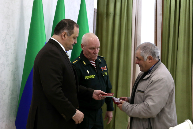 Глава Дагестана Сергей Меликов и командующий Северо-Кавказским округом войск национальной гвардии Российской Федерации генерал-полковник Сергей Захаров передали государственные награды погибших при исполнении воинского д