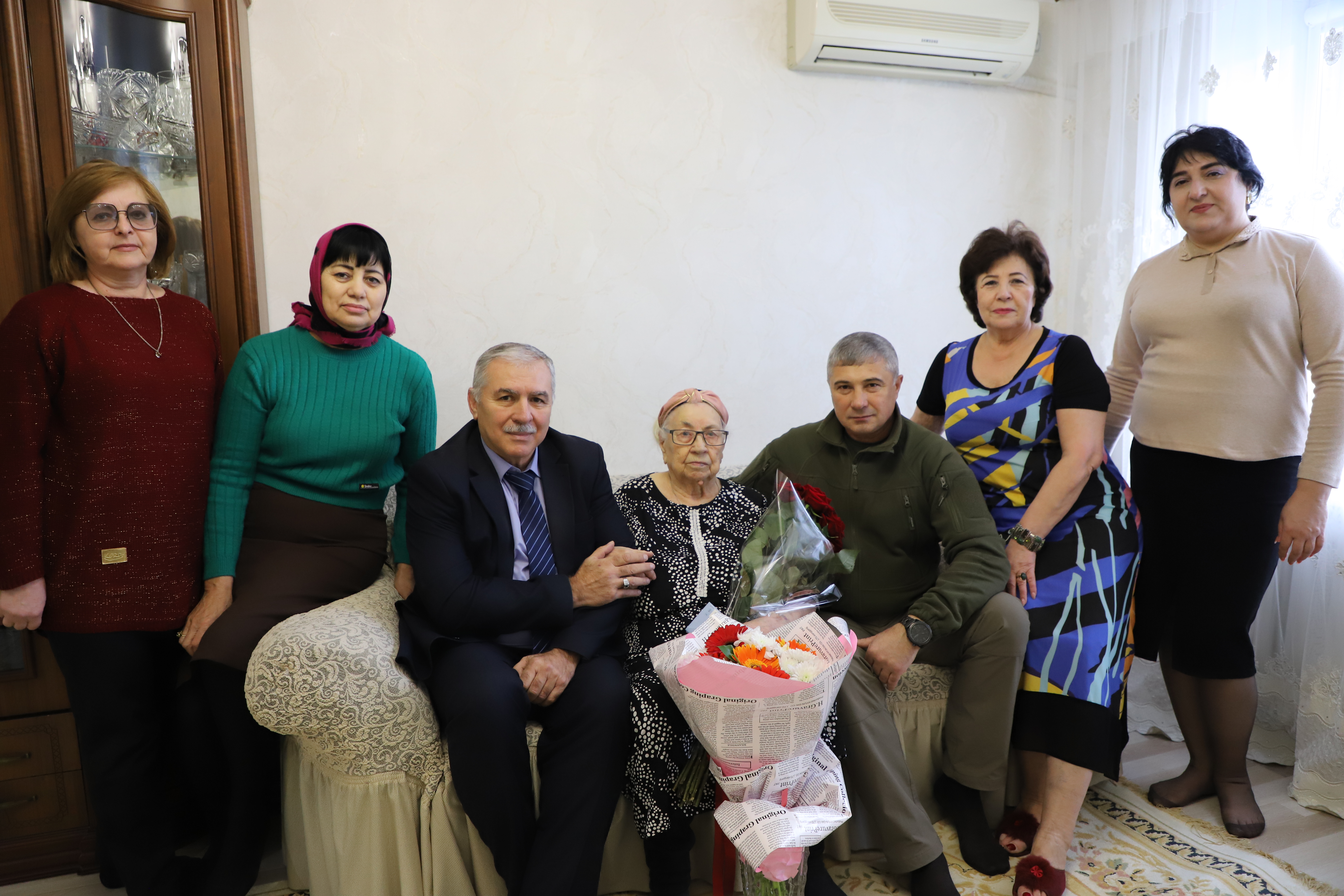 Глава муниципалитета вместе со своими заместителями Тимуром Гаирбековым и Заремой Агакшиевой, а также с начальником Управления сельского хозяйства Разияхан Алиловой от имени жителей Кизлярского района поздравил ветерана Великой Отечественной войны с днем рождения.