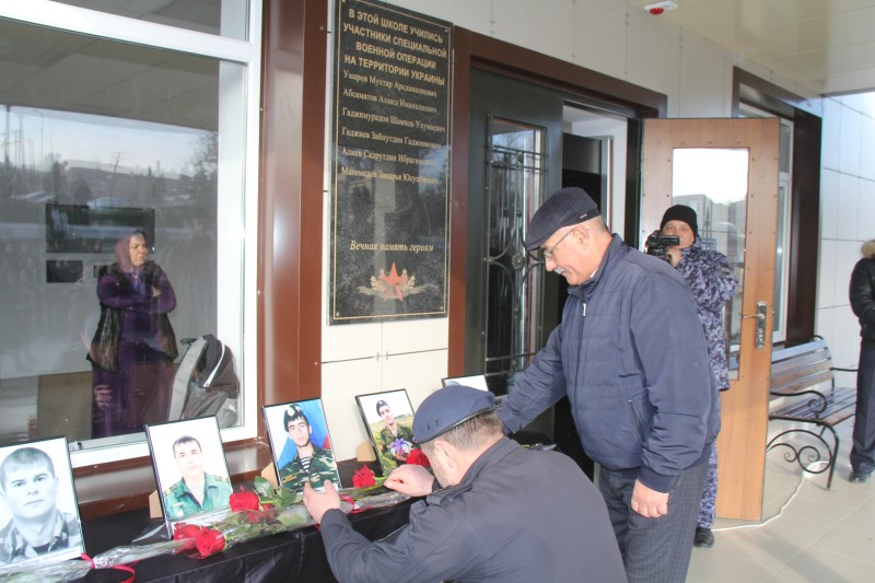 Торжественное открытие мемориальной доски, воинам, погибших при исполнении служебных обязанностей в ходе специальной военной операции на Украине, прошло 27 января в общеобразовательной средней школе селения Атланаул.