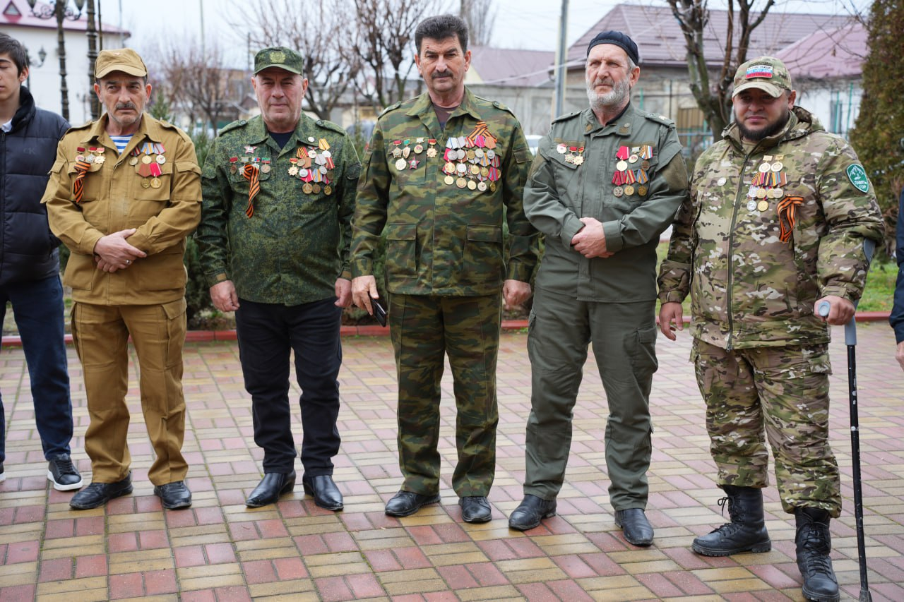 На торжественной церемонии также присутствовали участники СВО, ветераны афганских событий, представители военного комиссариата города, ДОСААФ, активисты поискового отряда «Кавказ» и юнармейцы.