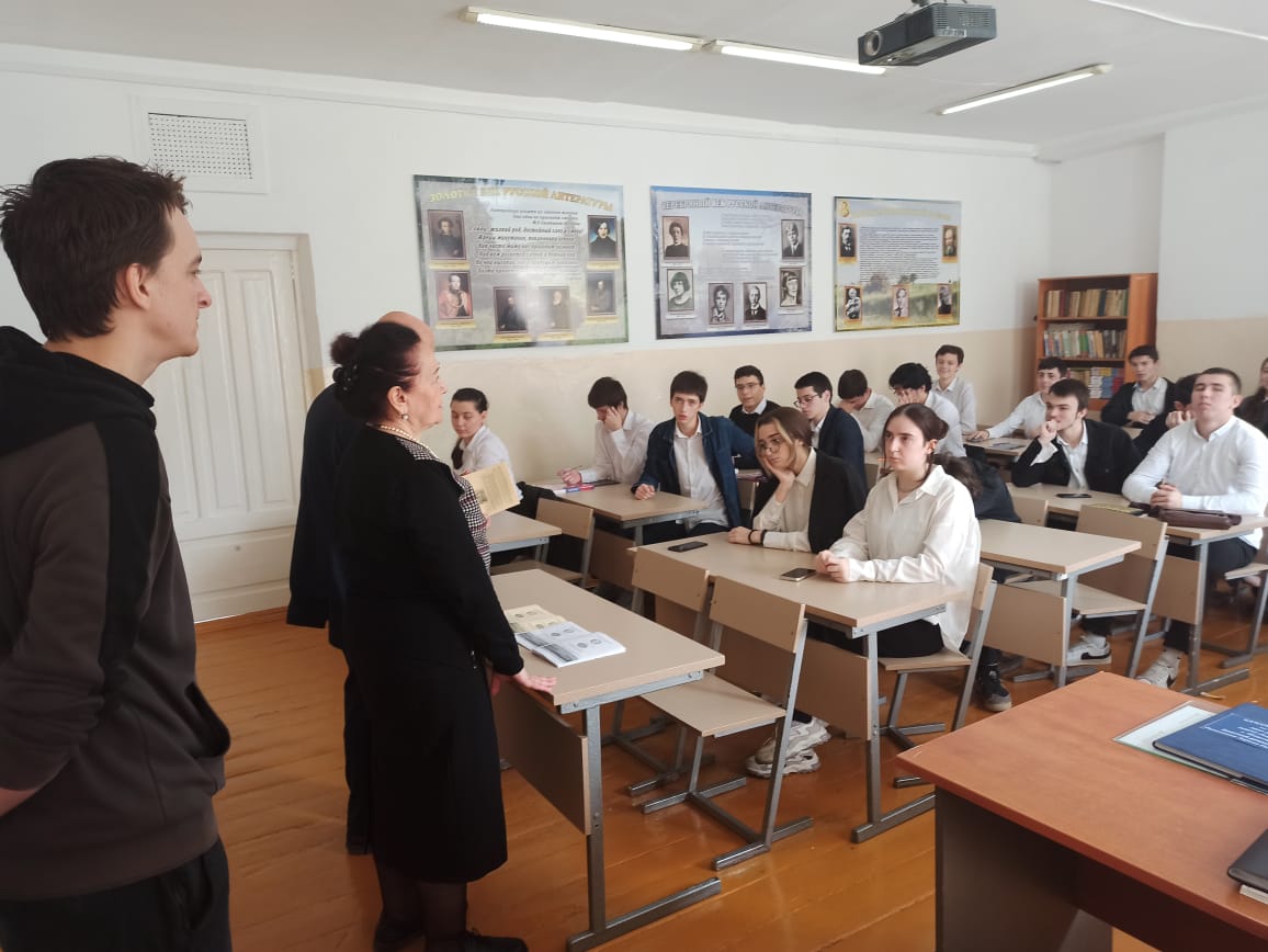 В соответствии с планом профориентационной работы преподаватели, студенты и аспиранты кафедры химии посетили МБОУ «Лицей №39 им. Б. Астемирова» г. Махачкалы. В школе находятся два класса химико-биологического направления. Выбранное ЕГЭ по биологии и химии необходимо для поступления на направление «Химическая технология», которое реализуется на кафедре химии ТФ ДГТУ.