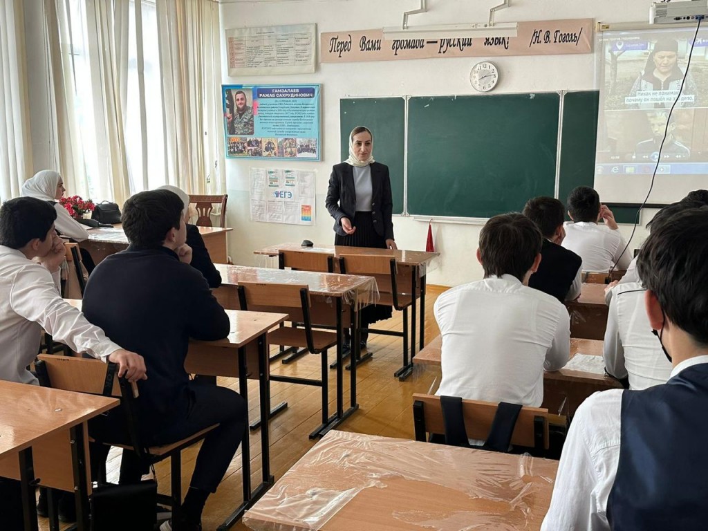 Накануне, заместитель начальника Управления образования Сайгибат Гереханова провела профилактическую беседу по противодействию терроризму и экстремизму «Терроризм – угроза личности, обществу, государству» с учащимися старших классов Ленинаульской СОШ №1, №2, №3 и Калининаульской СОШ.