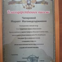 Также глава сельсовета «Карбачимахинский» Магомед Гаджиев получил благодарственное письмо от Командира Первого Дагестанского батальона «Каспий» Г. Маликова за поддержку, оказанную отряду в ходе выполнения служебно-боевых задач. Это лишь подтверждает важность взаимодействия между местными органами власти, жителями и вооруженными силами.