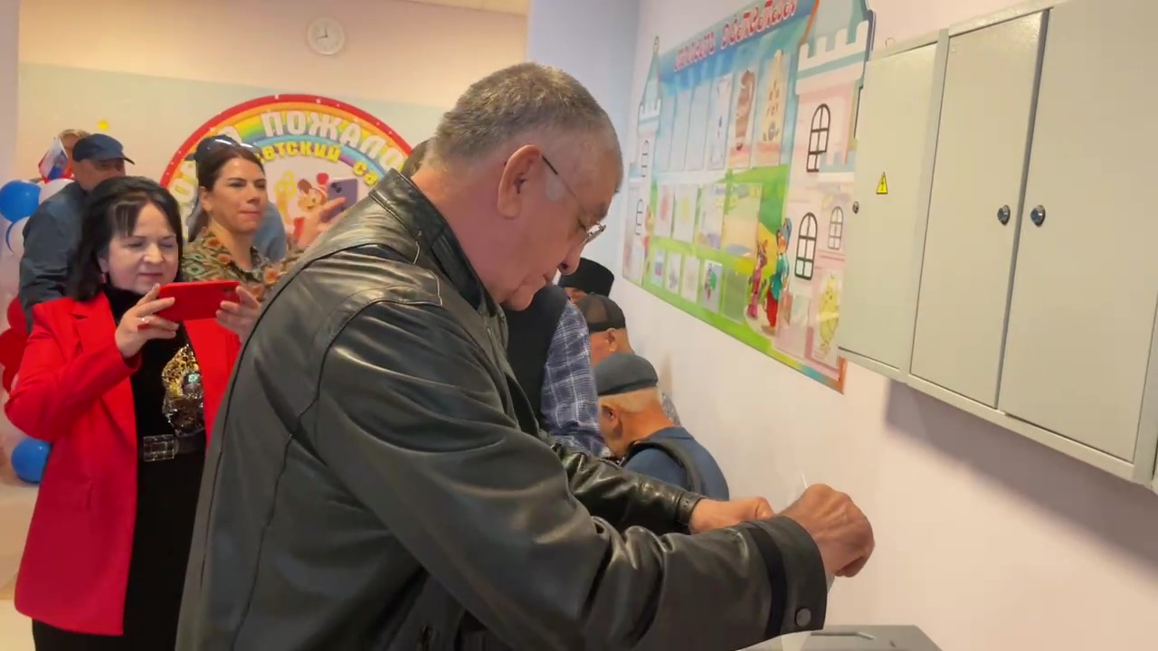 После небольшой музыкальной паузы глава города довел до конца исполнение гражданского долга, сделал выбор в кабине для голосования и опустил бюллетень в урну.