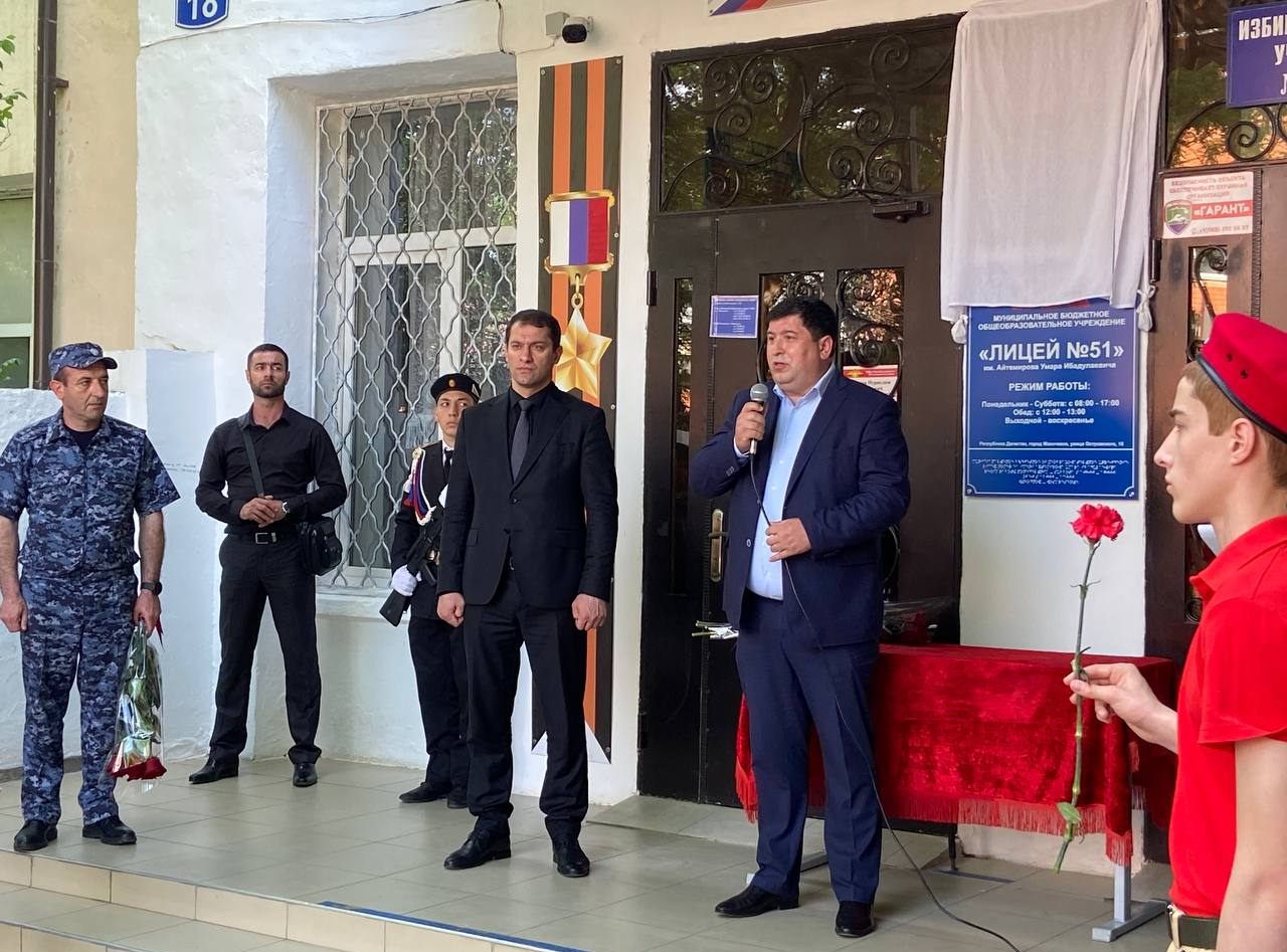 В Махачкале состоялось мероприятие, посвящённое открытию мемориальной доски и присвоению имени кавалера ордена Мужества Айтемирова Умара Ибадулаевича МБОУ «Лицей №51».