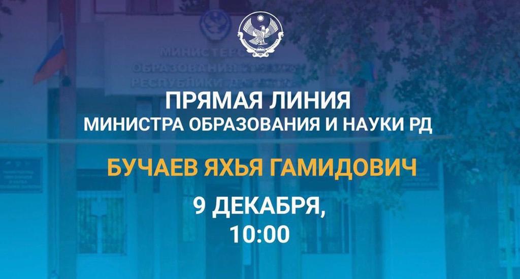 Уже завтра, 9 декабря, в 10:00ч. состоится прямая линия министра образования и науки Дагестана Яхьи Бучаева, посвященная подведению итогов работы в сфере образования в 2023 году.