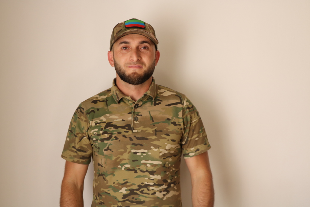 Съемочная группа Единого информационного центра Казбековского района встретилась с уроженцем селения Ленинаул, участником специальной военной операции Гаджиевым Хабибом Абдулкадыровичем, находящимся на данное время в отпуске.