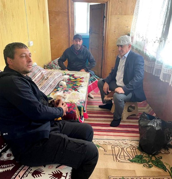 Гости еще раз выразили свои соболезнования и поддержку семье погибшего бойца. Они пообщались с отцом погибшего бойца Теймуром, выразили готовность участвовать в решении проблем и вручили продуктовый набор.