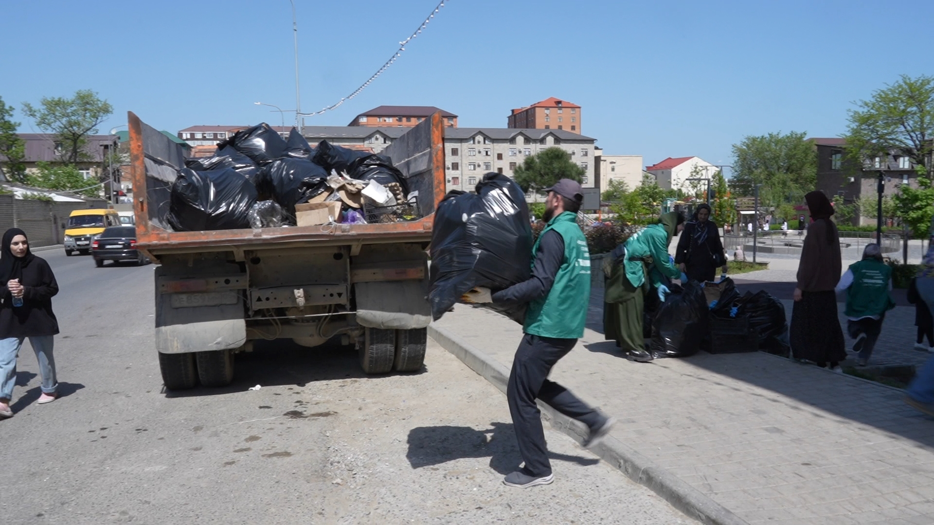 Параллельно работа шла в Сквере шахидов в поселке Сепараторный. Учащиеся медицинского колледжа имени Башларова собрали больше 200 пакетов мусора, в основном в подвале прилегающей стройки, куда ветром всё заносит с улицы.