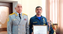 Руководитель пожарной части № 45 села Мехельта Магомедкамиль Нажуев к профессиональному празднику получил награду из рук начальника Главного управления МЧС России РФ генерал-майора Наримана Казимагамедова.