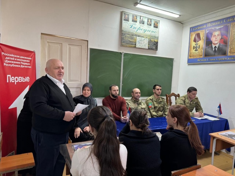 Председатель Ассоциации ветеранов СВО и ДРОО "Память гор" по Карабудахкентскому району Гасан Гамзаев с другими участниками СВО посетили Карабудахкентскую СОШ№ 5, где провели "Урок мужества".
