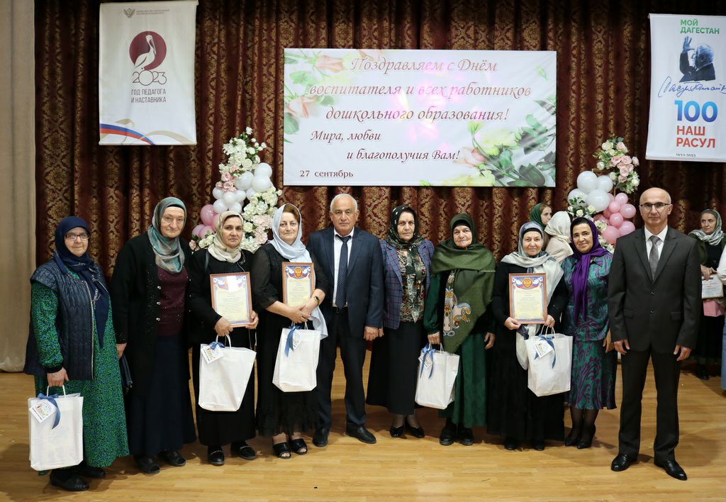 Далее выступившие руководитель аппарата администрации, председатель молодёжного парламента района Марьям-Асият Гамзатова, начальник МКУ «Управление образования» Магомедрасул Магомаев и председатель профсоюза работников образования Ибрагим Дадаев отмечали, что быть воспитателем — это ответственность, нелёгкий и бесценный труд. Спикеры также поблагодарили воспитателей за их внимание, заботу и тепло, добавив, что именно в дошкольном возрасте у ребят закладываются основы характера, раскрываются таланты и от профессионализма воспитателей зависит дальнейшее развитие детей.