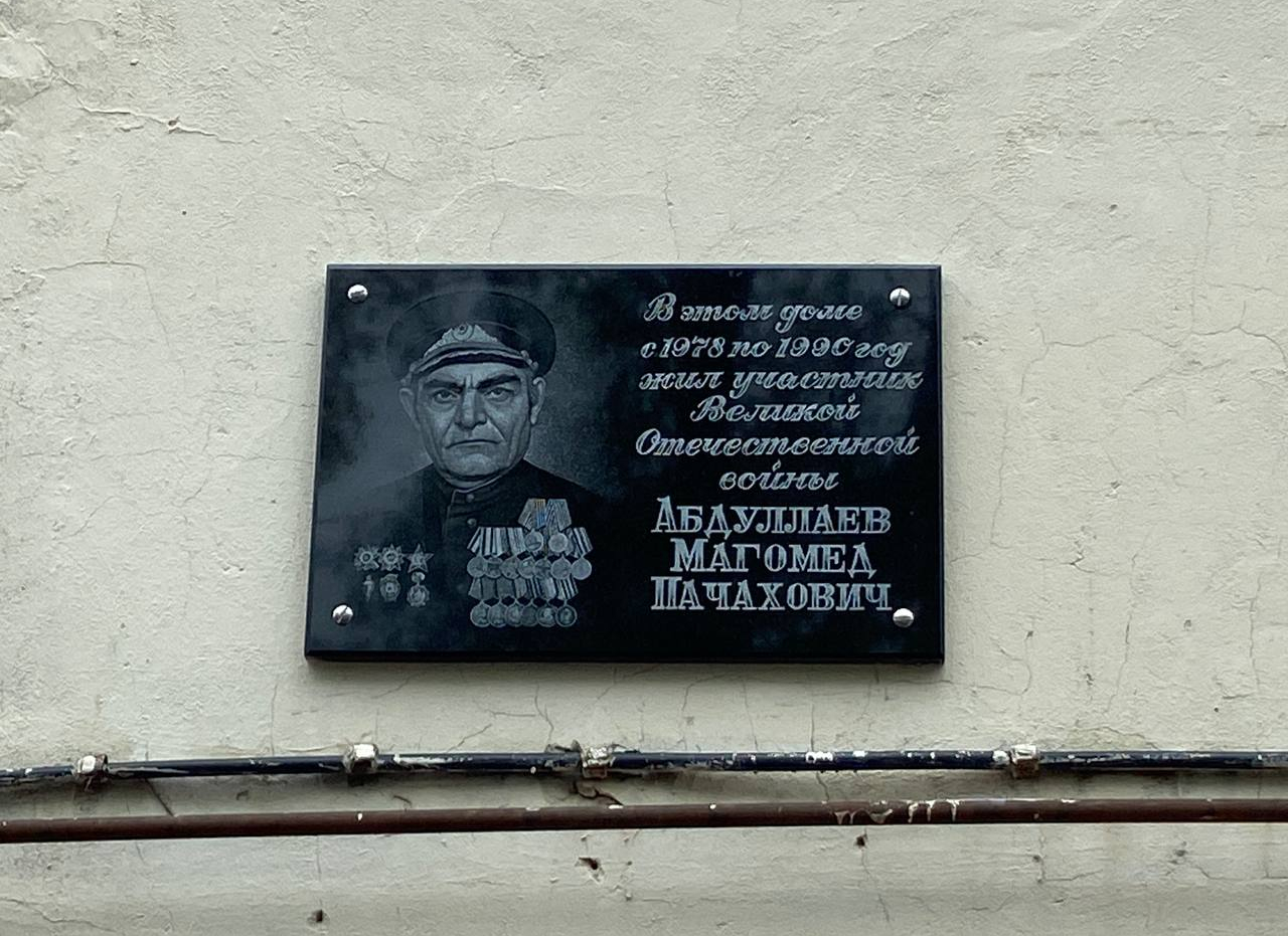 В Махачкале на стене дома № 160 по улице Магомеда Гаджиева установили мемориальную плиту, увековечившую память участника Великой Отечественной войны Абдуллаева Магомеда Пачаховича.