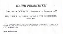 Банк получателя: Отделение №5230 Сбербанка России г.Ставрополь