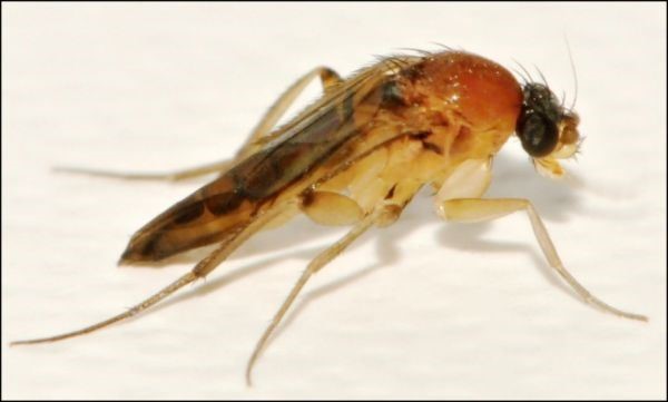 Многоядная муха-горбатка (Megaselia scalaris (Loew)), семейство горбатки (Phoridae) отряда Двукрылые (Diptera) – является потенциальным универсальным вредителем запасов.