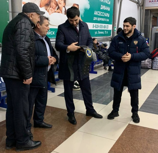 И.о. главы Буйнакского района Уллубий Ханмурзаев встретил в аэропорту чемпиона России по греко-римской борьбе Динислама Бамматова.