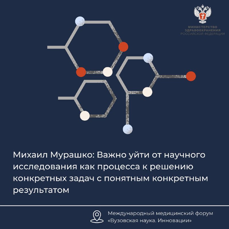 — Важно изменить подход, уйти от научного исследования как процесса к решению конкретных задач с понятным конкретным результатом. Такая парадигма становится доминирующей не только в области медицинской науки, но и в прикладной науке в целом, — отметил Михаил Мурашко.