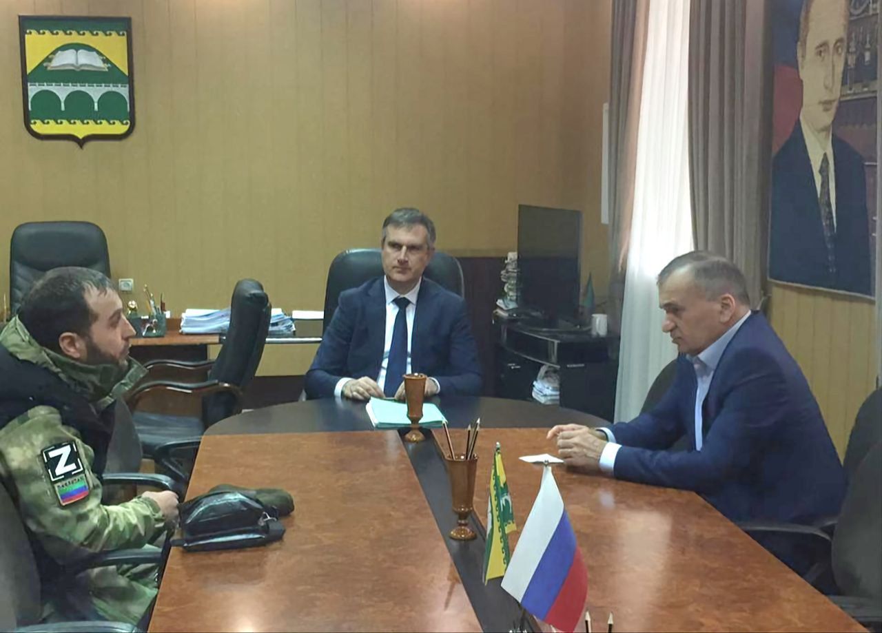 Глава Сулейман-Стальского района Саид Темирханов встретился с мобилизованным, вернувшимся из зоны СВО по болезни.