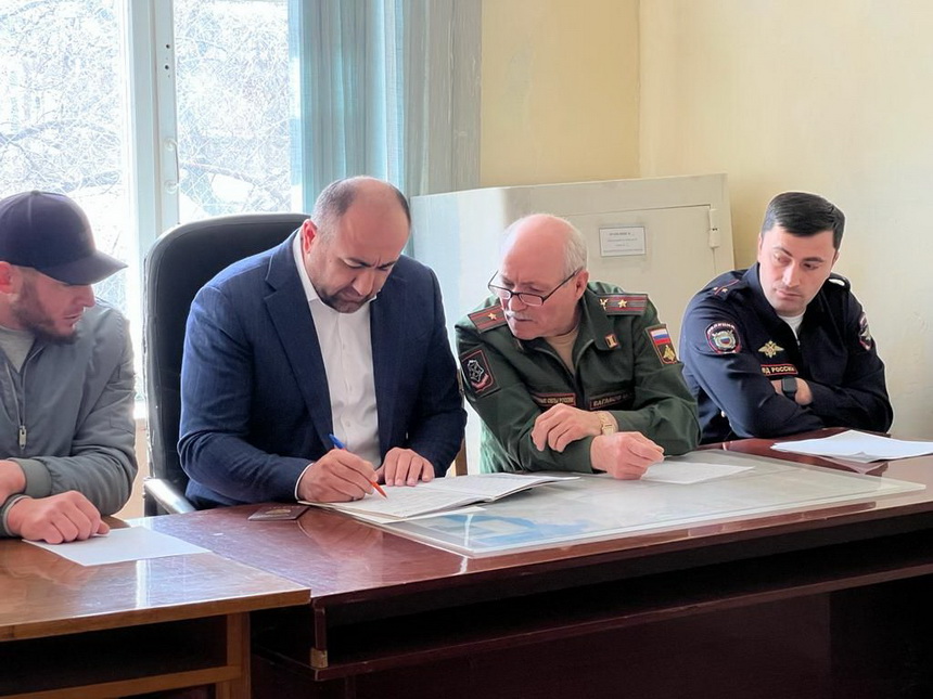 Призывная комиссия во главе с председателем призывной комиссии Шамилем Рамазановым и советом призывной комиссии, куда входят главврач Кулинской ЦРБ Курбан Щамхалов, начальником молодежного отдела Курбан,