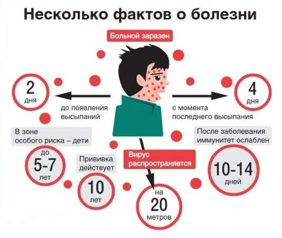 Источник инфекции – больной человек, который заразен для окружающих с конца инкубационного периода и в течение 4 дней после появления сыпи.