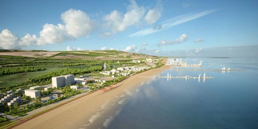 Источник: https://кавказ.рф/press-center/novosti/stroitelstvo-kaspiyskogo-klastera-nachnetsya-s-mnogofunktsionalnogo-tsentra.html Первый объект будущего морского курорта под управлением Кавказ.
