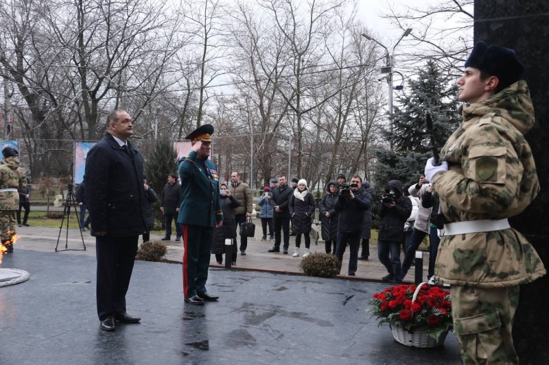Глава республики в сопровождении командующего Северо-Кавказским округом войск Росгвардии, генерал-полковника Сергея Захарова, руководителей республиканских ведомств и силовых структур почтил память воинов, павших в Великой Отечественной войне 1941-1945 гг.