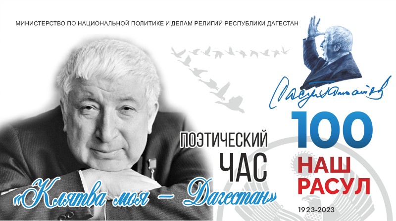 19 января 2023 г. в 14:00 в конференц-зале Исторического парка «Россия - Моя история» состоится поэтического часа на тему «Клятва моя — Дагестан», посвященный празднованию 100-летия со дня рождения народного поэта Республики Дагестан Расула Гамзатова.