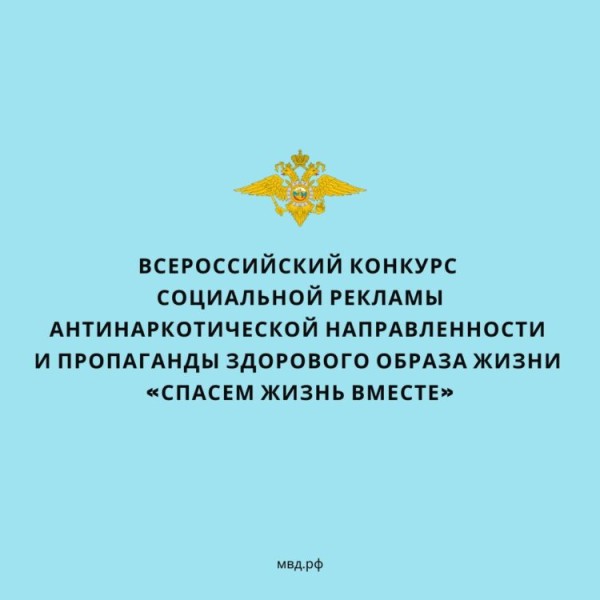 МВД России в период с 10 января по 20 февраля 2023 г. проводит региональный этап Всероссийского конкурса социальной рекламы антинаркотической направленности и пропаганды здорового образа жизни «Спасем жизнь вместе».