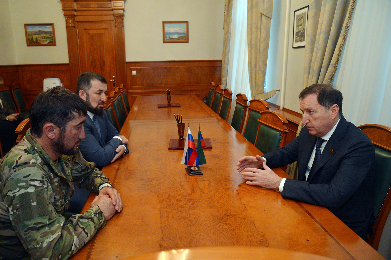 МАХАЧКАЛА, 18 апреля – РИА «Дагестан». Председатель НС РД Заур Аскендеров встретился с участником СВО Магомедом Раджабовым. Об этом информагентству сообщили в пресс-службе парламента.