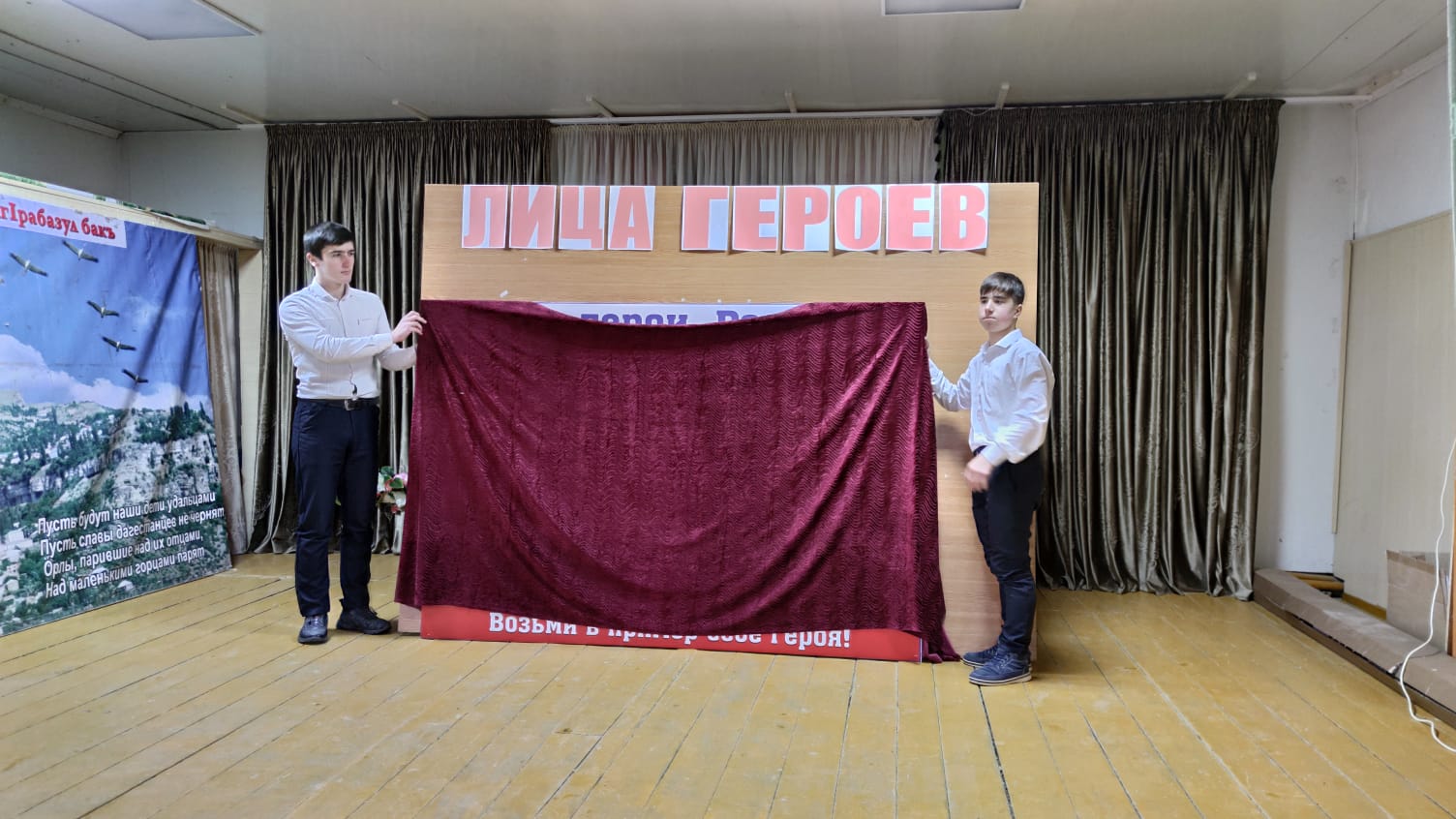 «Сегодня мы собрались здесь, чтобы рассказать о героях России, о славных сыновьях Дагестана, которым посвящен стенд «МЫ ТВОИ ГЕРОИ, РОССИЯ».