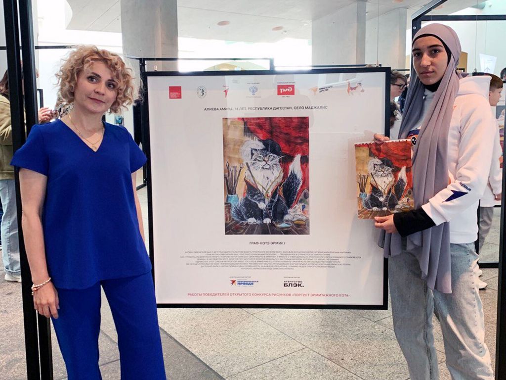 Ученица 8 класса Маджалисской СОШ имени Темирханова Амина Алиева приняла участие в Открытом Всероссийском конкурсе рисунков школьников «Портрет Эрмитажного кота»,