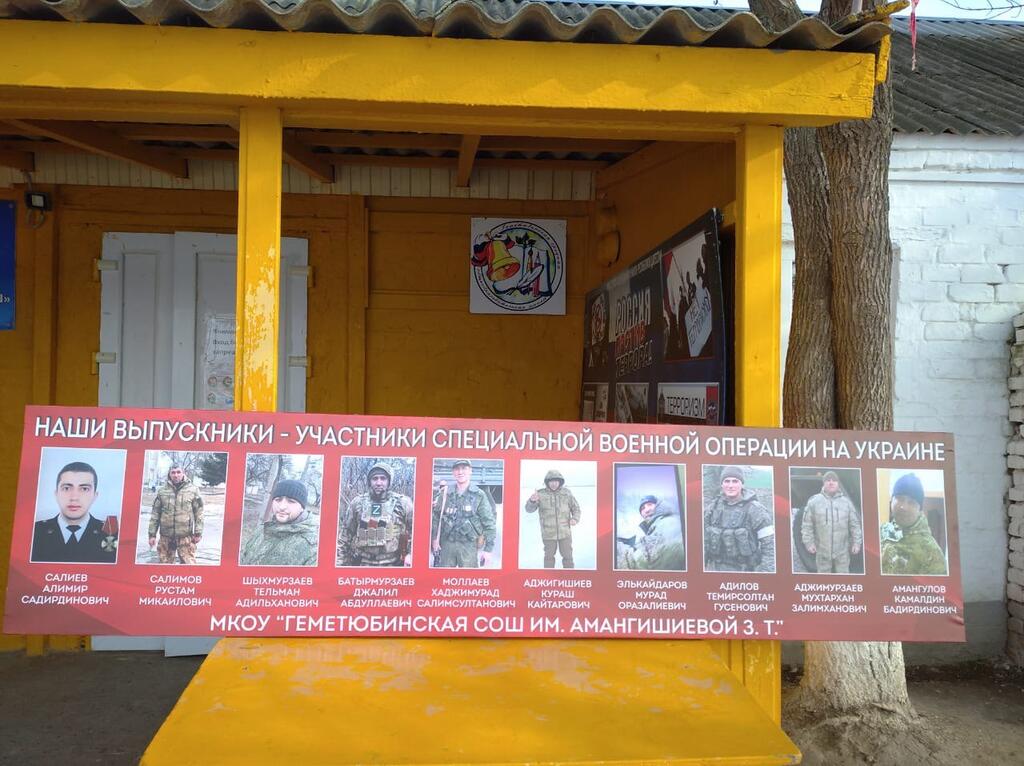 "Большой материал представлен об участниках афганских событий об Аджиеве Абдурагиме Маликовиче и Салиеве Ахмеда Биймурадовиче. На фасаде школы оформлен стенд «Наши выпускники – участники Специальной военной операции на Украине», — сказала К. Шихмурзаева.