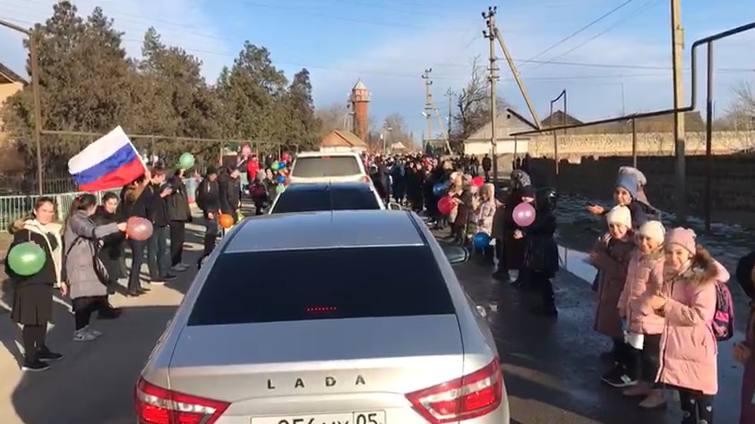 Не смотря на субботний день, в селе Герменчик было многолюдно. Родные и близкие, друзья и родственники, школьники и учителя – все село встретило своего героя с песнями и танцами. Колонна автомобилей проехала в село сквозь живой коридор, который был организован сельчанами для Билала Ильясова.