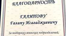 В документе сказано, что главе Гумбета Галипу Галипову объявляется благодарность «За поддержку воинских подразделений, семей военнослужащих – участников специальной военной операции Российской Федерации и нуждающихся в помощи людей».