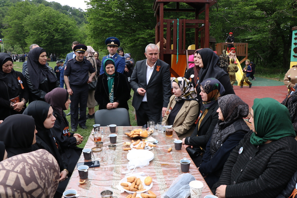 Сегодня глава Казбековского района Гаджимурад Мусаев после завершения торжественной церемонии открытия мемориальной зоны у стелы в «Саду Памяти» встретился с матерями и вдовами погибших участников СВО.