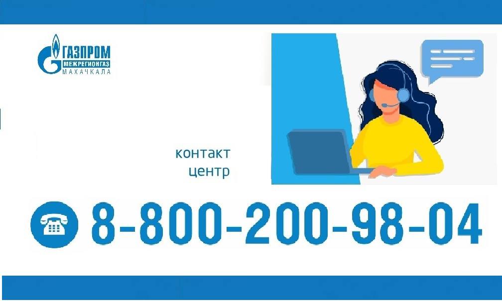 Номер «Контакт центра» ООО «ГАЗПРОМ МЕЖРЕГИОНГАЗ МАХАЧКАЛА» 8-800-200-98-04 (звонок бесплатный).