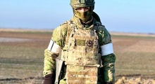 ‹ › Боец спецоперации по демилитаризации и денацификации Украины, уроженец села Шабдух Гумбетовского района Расул Гаджиев носит шеврон «Работаем, брат!».