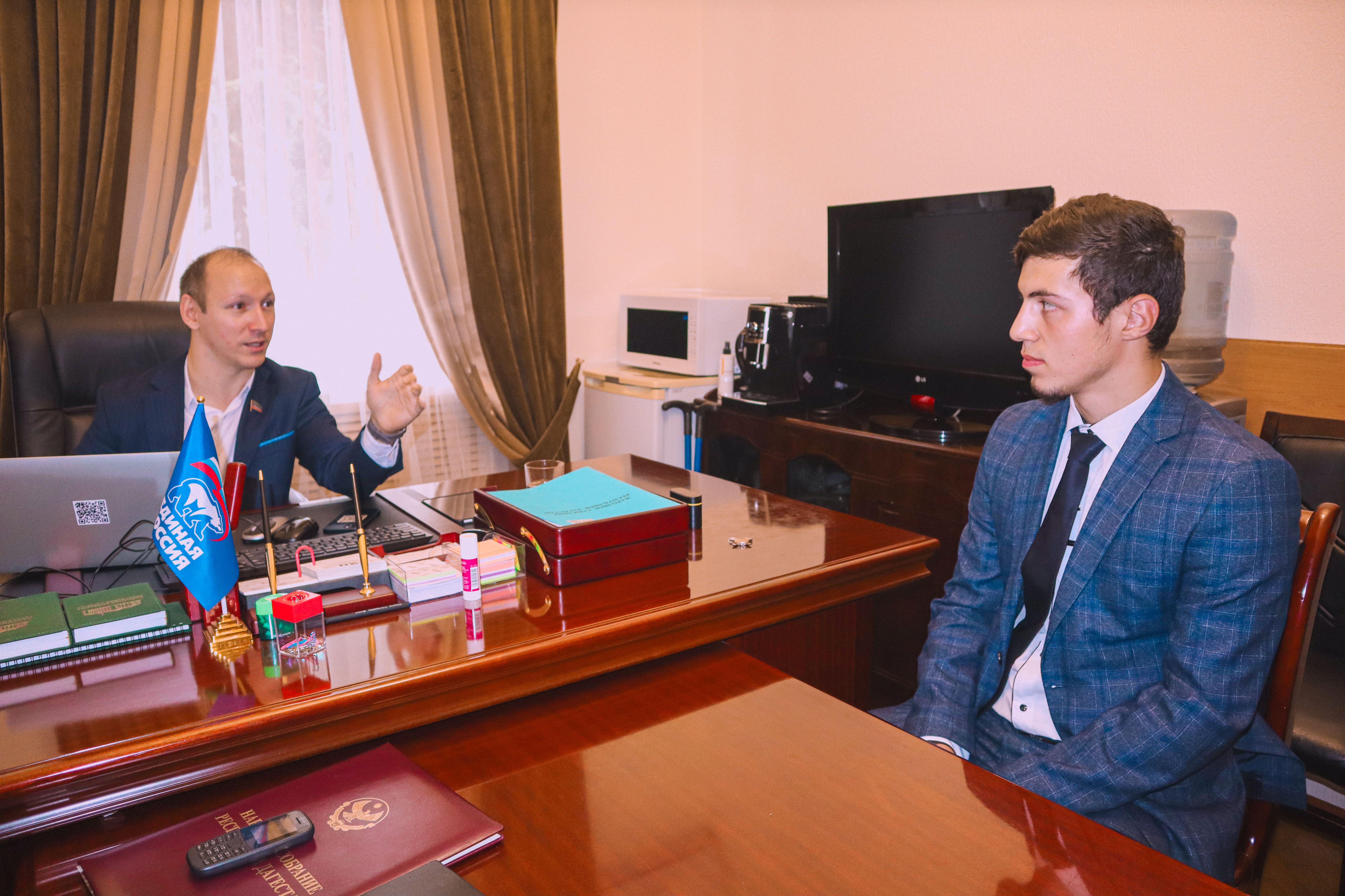 Шахбан Магомедов, инвалид II группы по зрению, является студентом 4-го курса Хасавюртовского филиала ДГУ юридического факультета. Молодой человек обратился за консультацией по поводу инклюзивного образования, с просьбой о помощи в трудоустройстве.