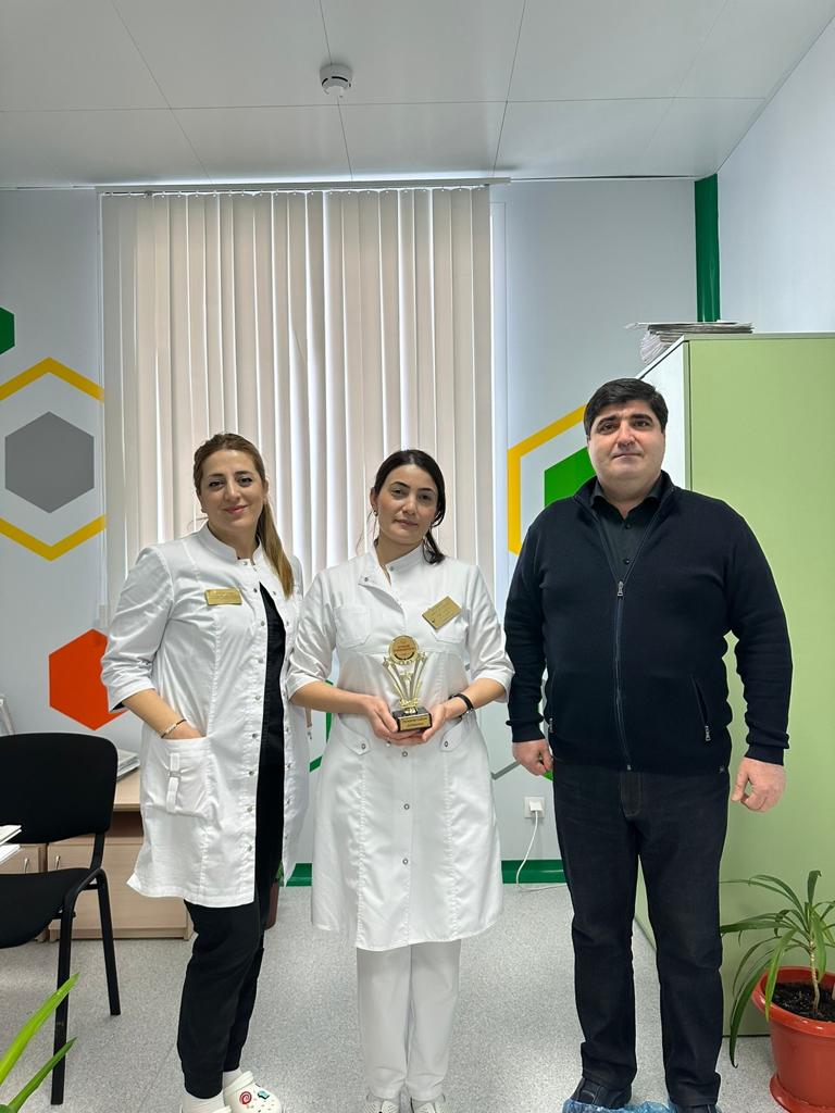 Видади Асадов поблагодарил Сабину Назарову за её нелегкий высокопрофессиональный труд и вручил ей именной кубок «Лучший руководитель». А для отделения он приобрел кресло-коляску.